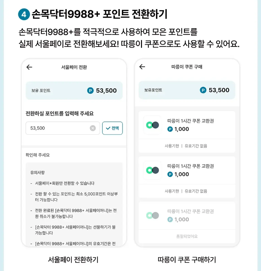 - 포인트 = 년간 최대 10만 포인트 지급 / 서울페이 또는 따릉이 이용 쿠폰 전환 사용