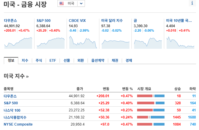 ✔️ 다우존스 산업평균: +0.5% 상승, 44,901.92