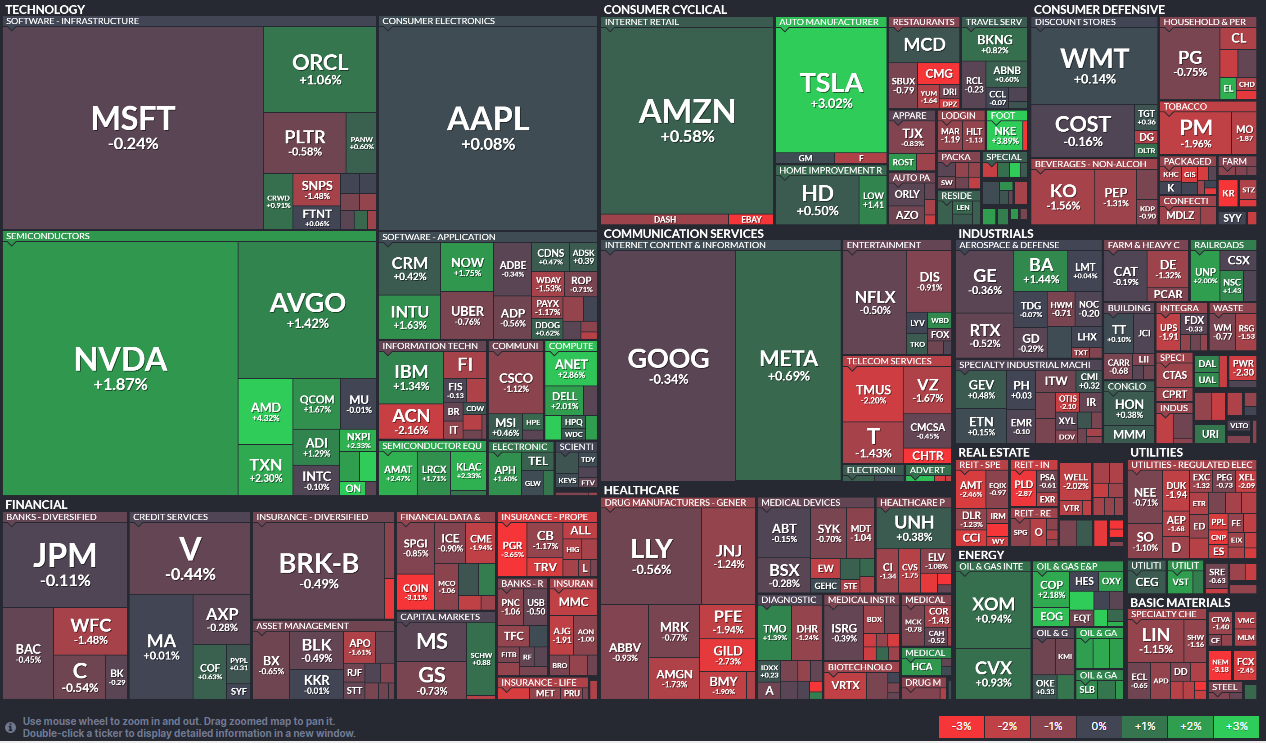 ✔️ S&P 500: 6,389.77 소폭 상승 (+0.02%), 여섯 거래일 연속 신고가 마감