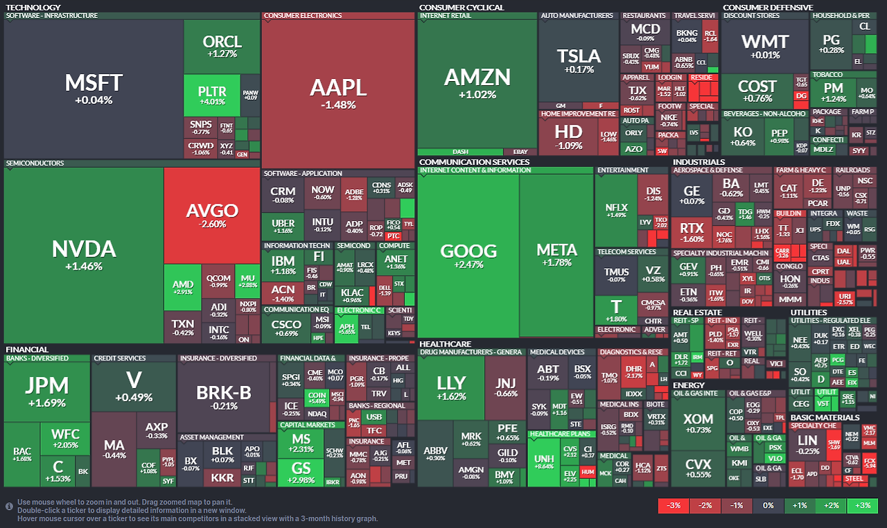 기술주 중심 랠리 흐름이 이어지는 가운데, Apple, Alphabet 등의 고밸류 종목은 일부 차익 실현 고려.