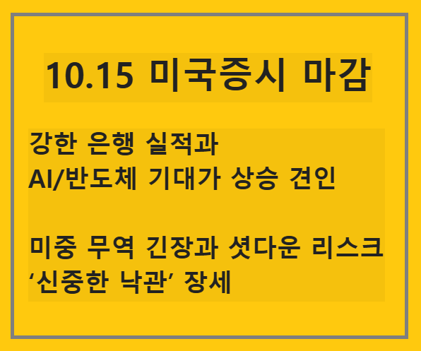 2025.10.15 - [잘먹고 잘살자/금융관련] - 10.15(현지기준) 미국 뉴욕증시 마감 : 다중 이슈로 인한 시장급변, 나스닥 중심 기술주 하락