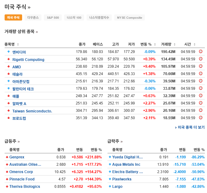 | S&P 500 | +0.40% | 은행 실적 호조와 반도체 업종 강세로 상승 마감 |