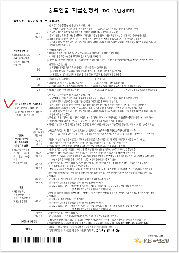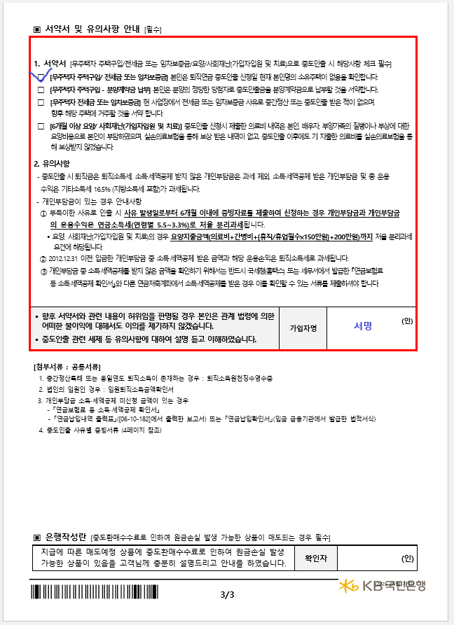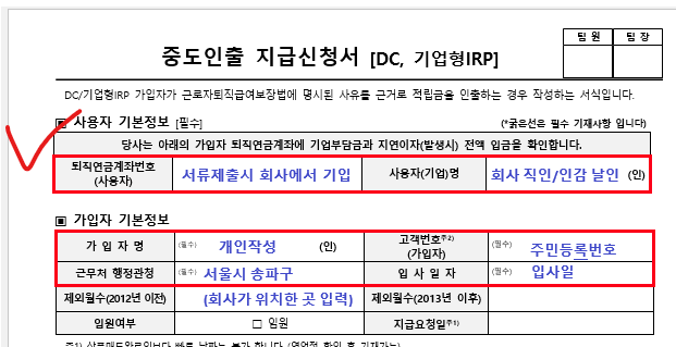 퇴직연금중도인출지급신청서: 은행 양식