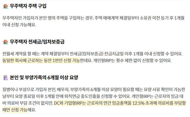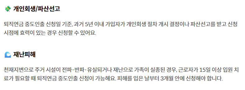 | 3. 퇴직연금 중도 인출 사유 |