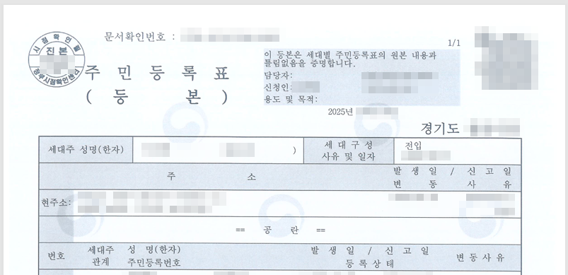 주민등록등본: 현 거주지 증명