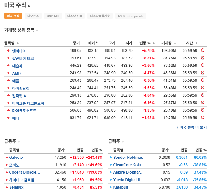 반도체, AI 빅테크들의 상승세가 전체 지수들을 견인하고 있는 모습입니다.