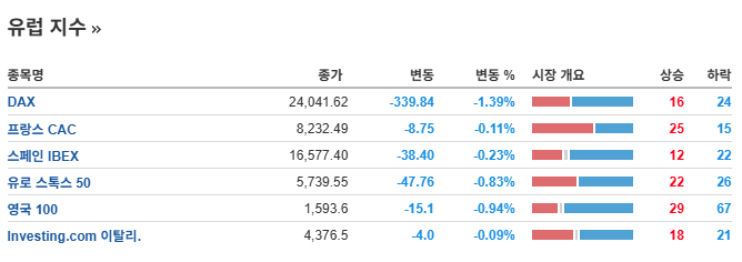Russell 2000 (소형주 지수) : 2,382.98포인트, 전일 대비 -2.8%.